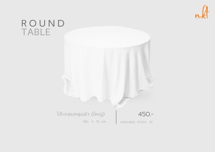 เช่าโต๊ะกลมคลุมผ้าใหญ่ | 450 |