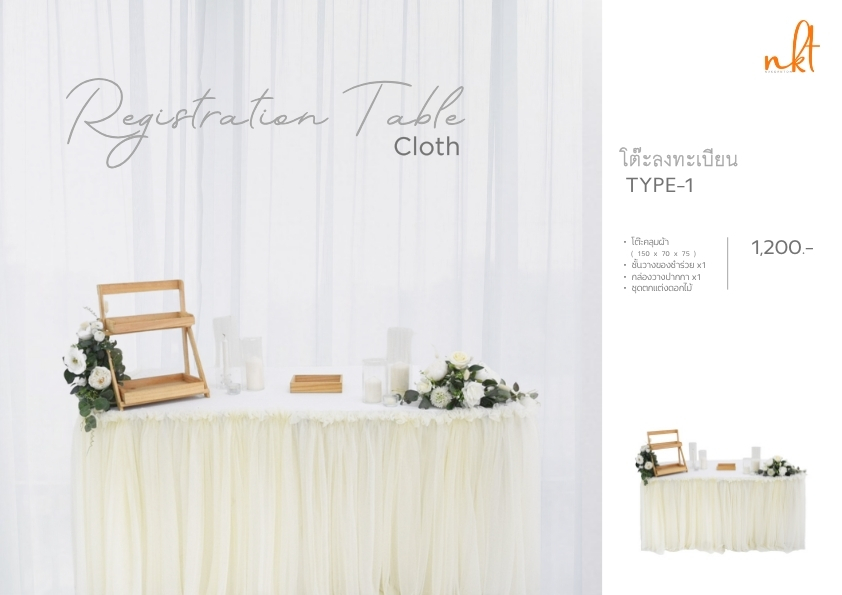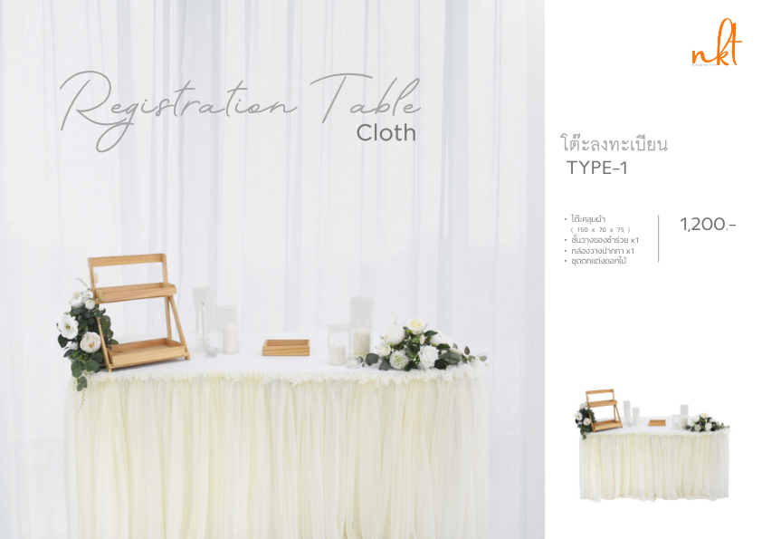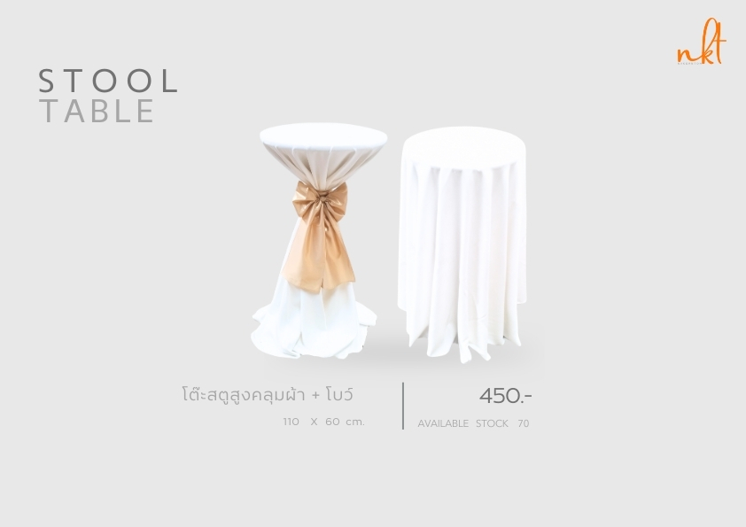 เช่าโต๊ะสตูคลุมผ้า + โบว์ 110x60cm | 450 |