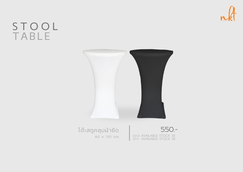 เช่าโต๊ะสตูคลุมผ้ายืด 60x110cm | 550 |