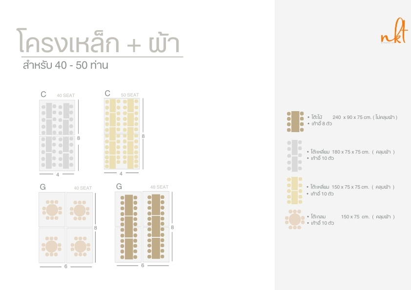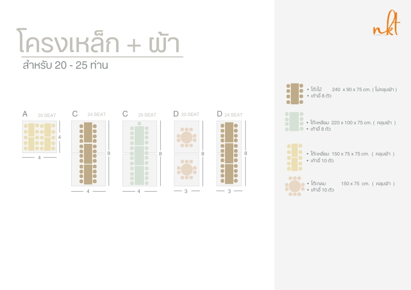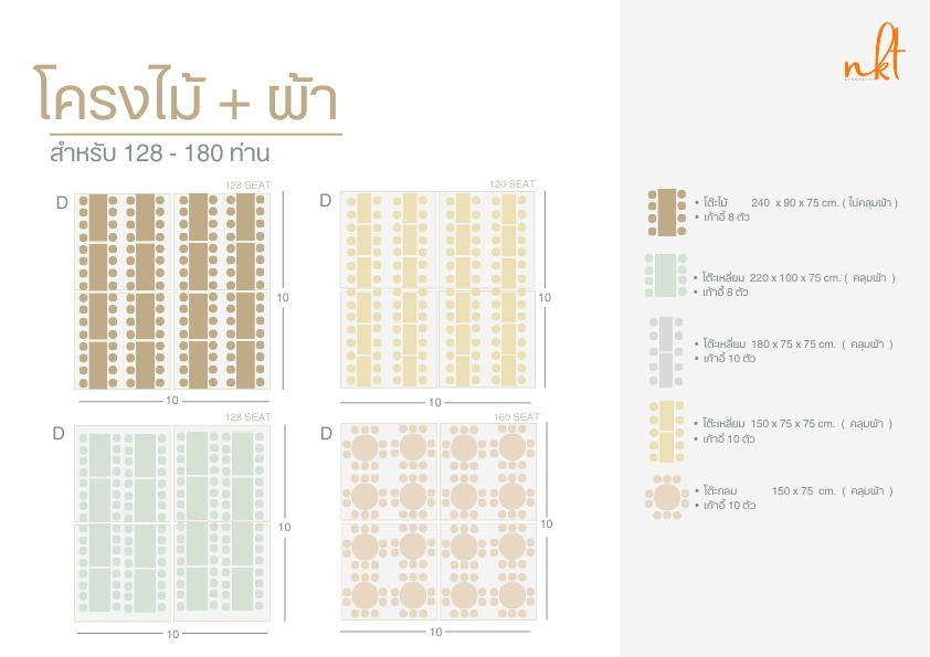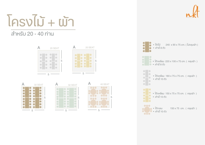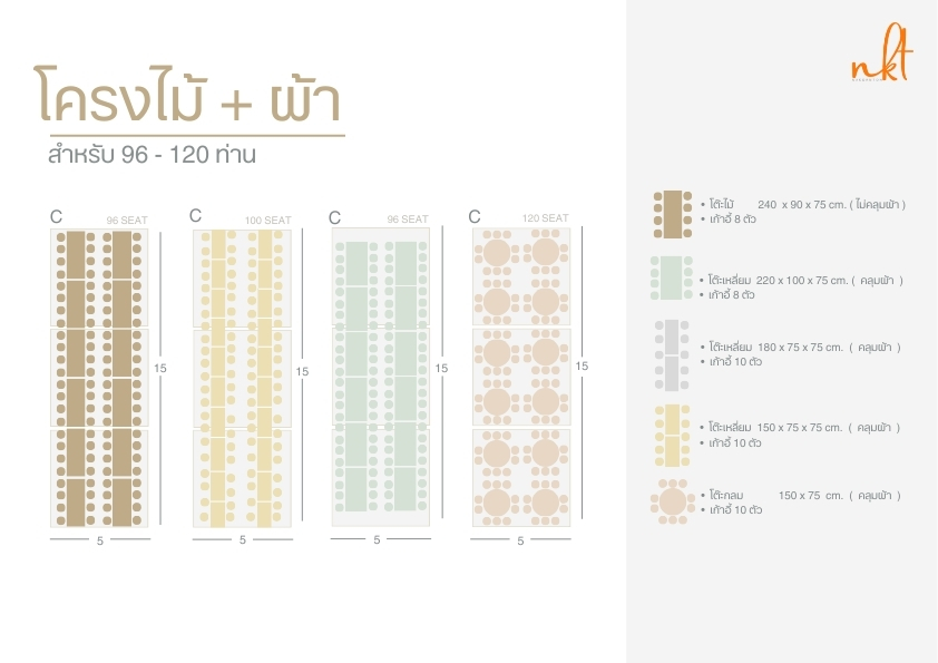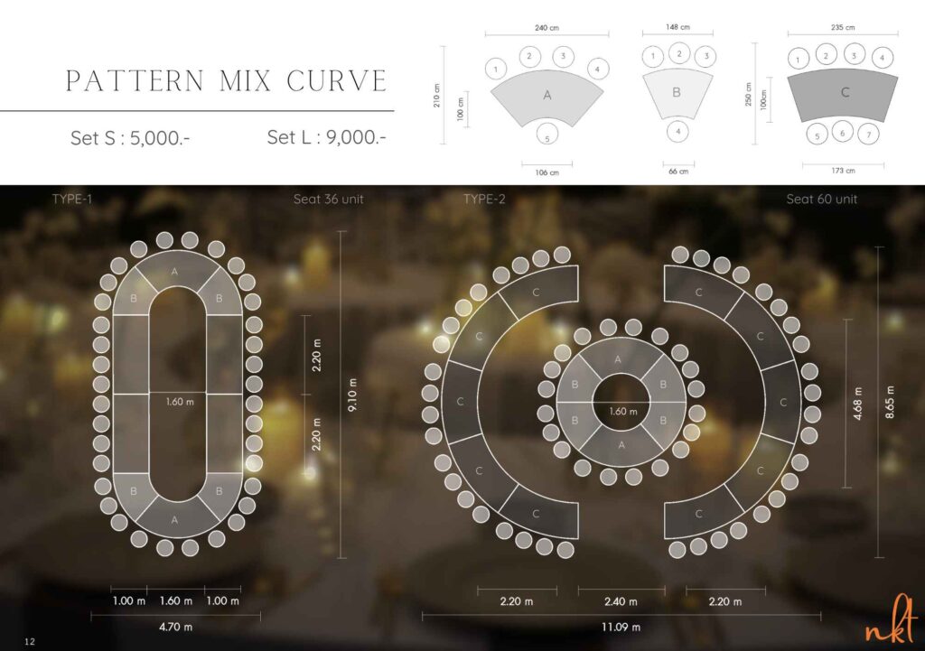 เช่าเซตโต๊ะโค้ง Mix S (ใช้รูปแบบ A,B,C) | Set 5,000 |