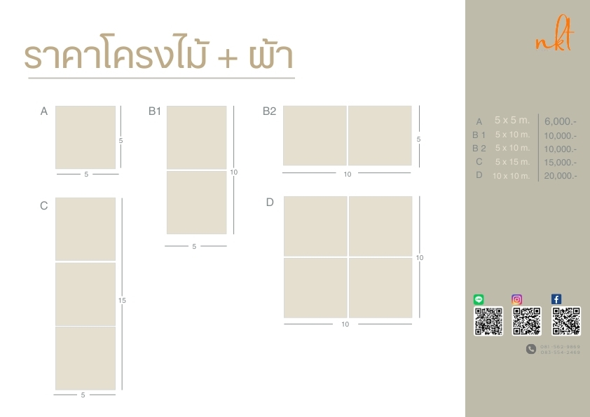 เช่าเต้นท์โครงเหล็ก+ผ้า(A) 4x4m | 5,000 |