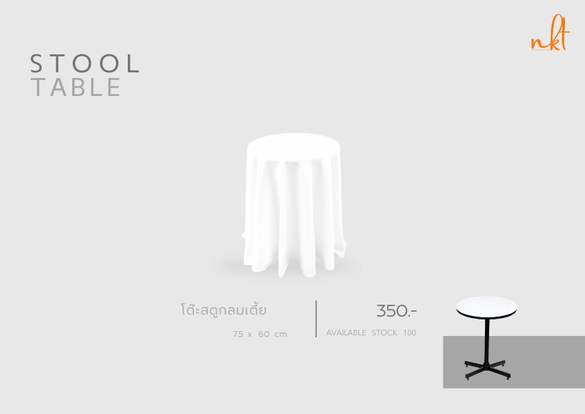 เช่าโต๊ะสตูกลม(เตี้ย) 75x60cm | 350 |