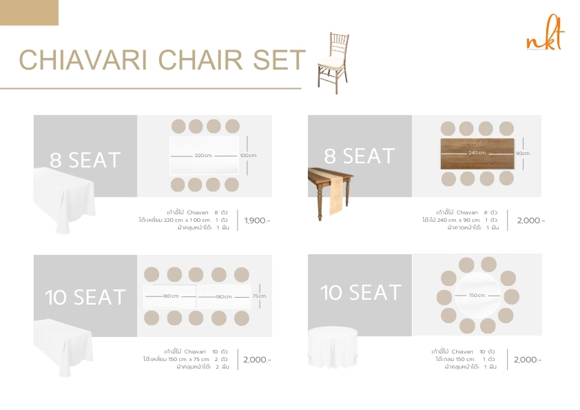 เช่าเก้าอี้บุนวม+ผ้าคลุม+โบว์ | 75 |