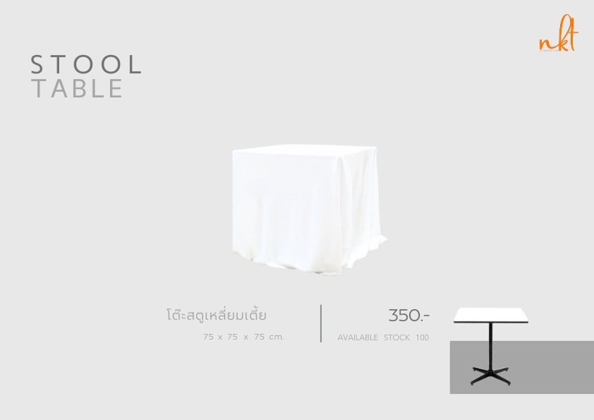 เช่าโต๊ะสตูเหลี่ยม(เตี้ย) 75x75x75cm | 350 |