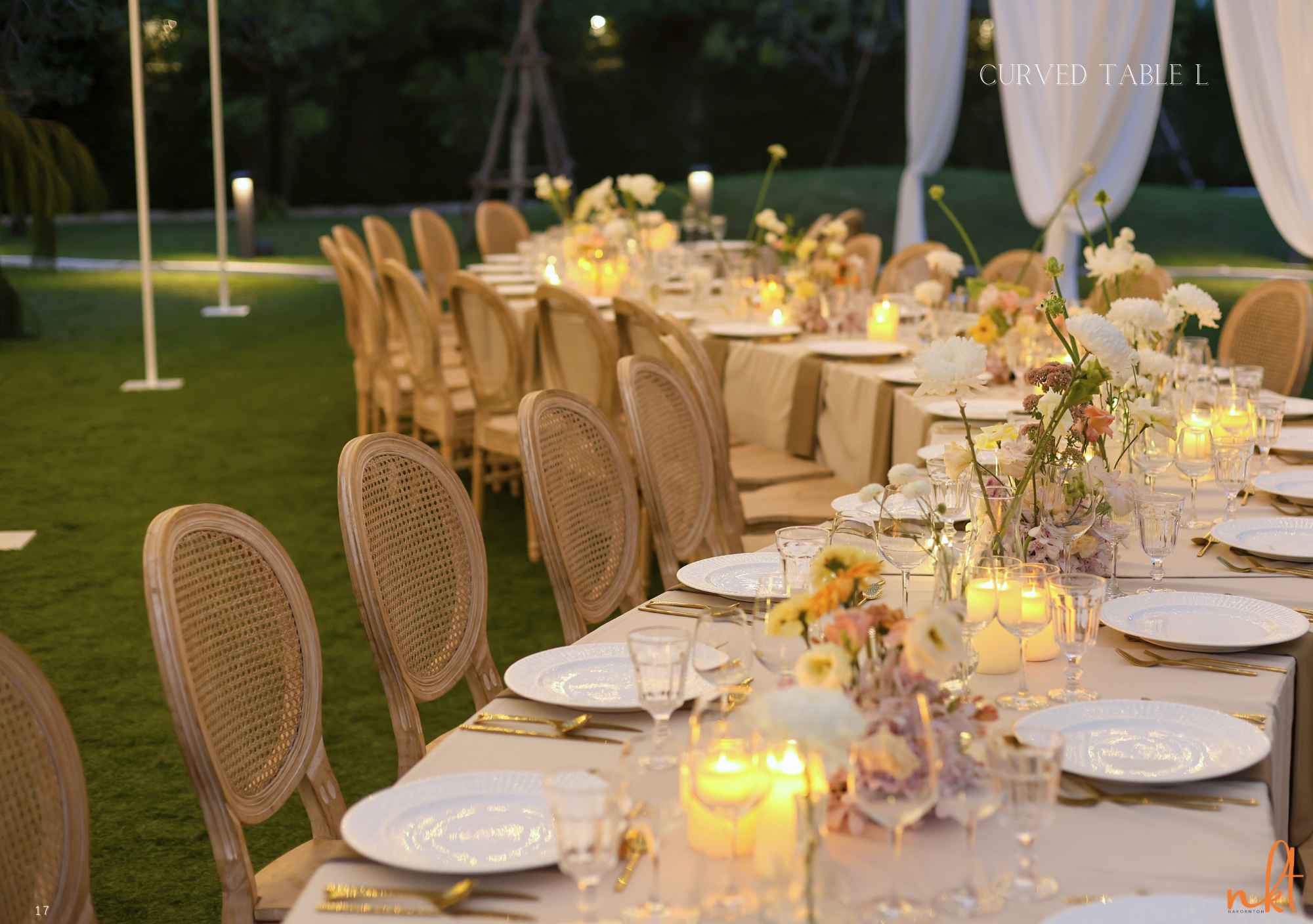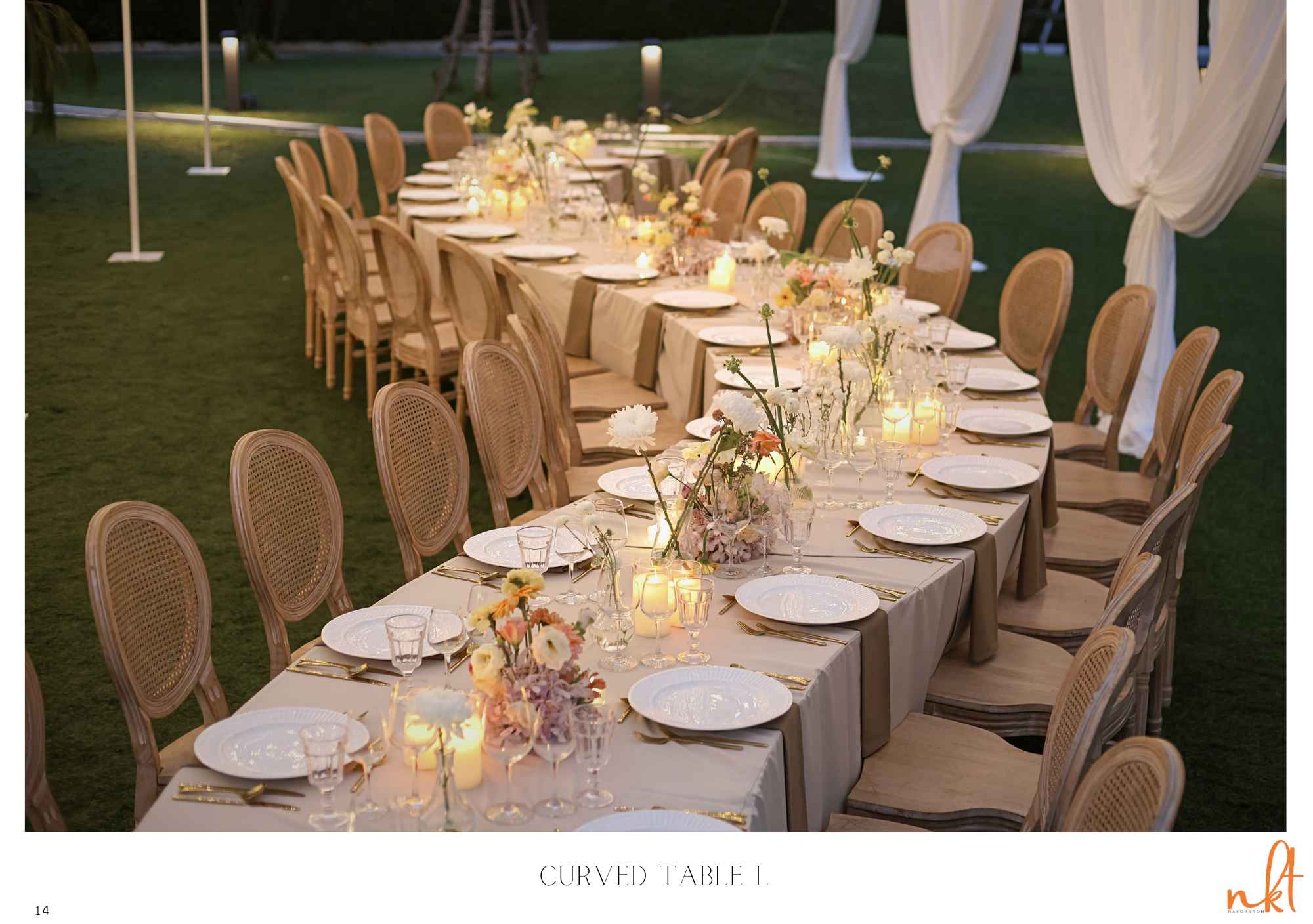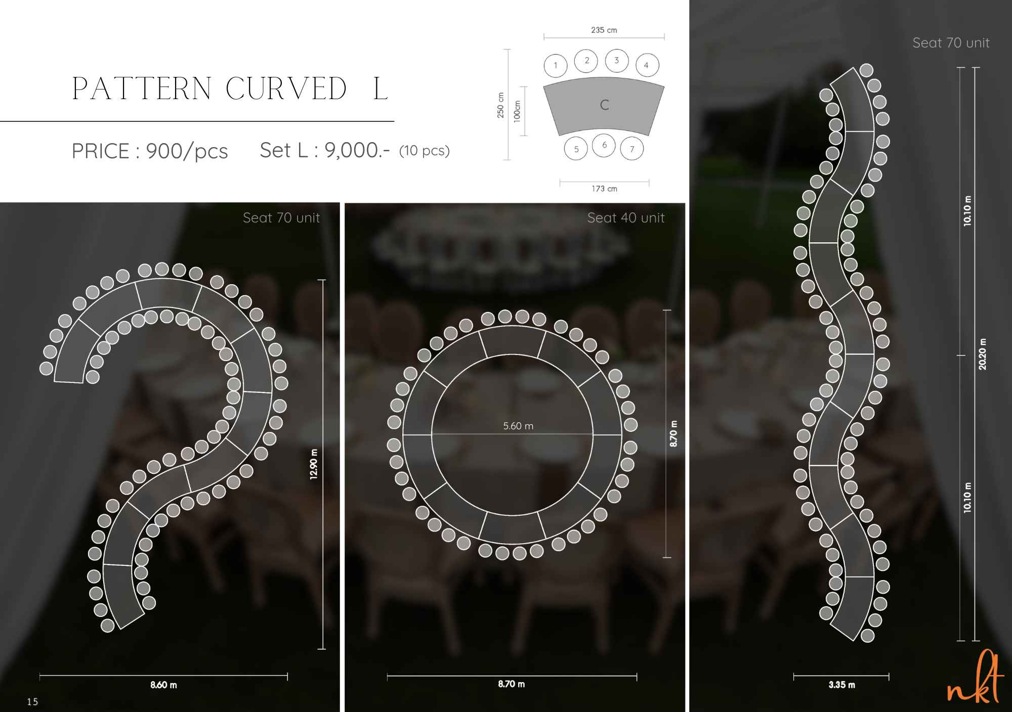 เช่าเซตโต๊ะโค้ง Mix L (ใช้รูปแบบ A,B,C) | Set 9,000 |