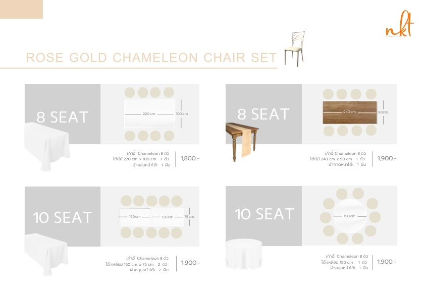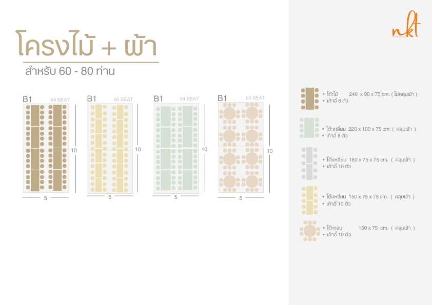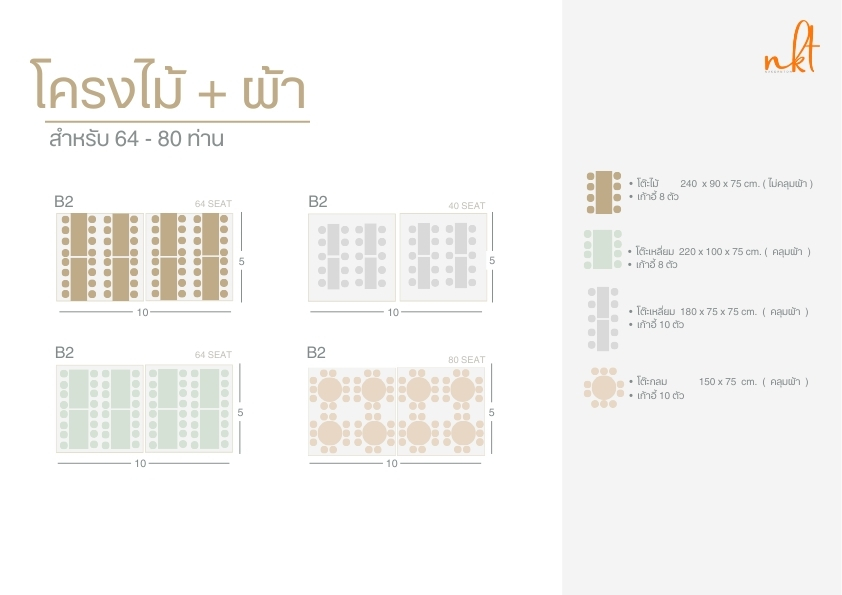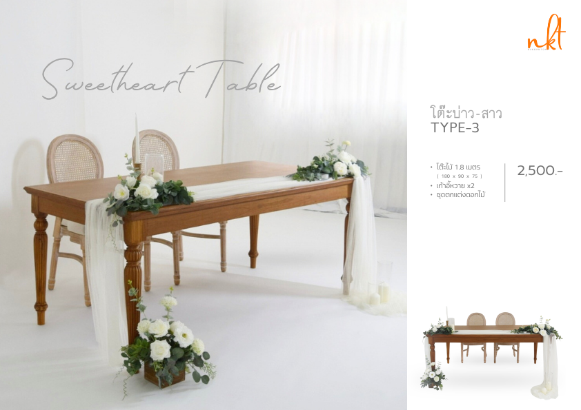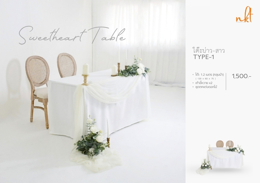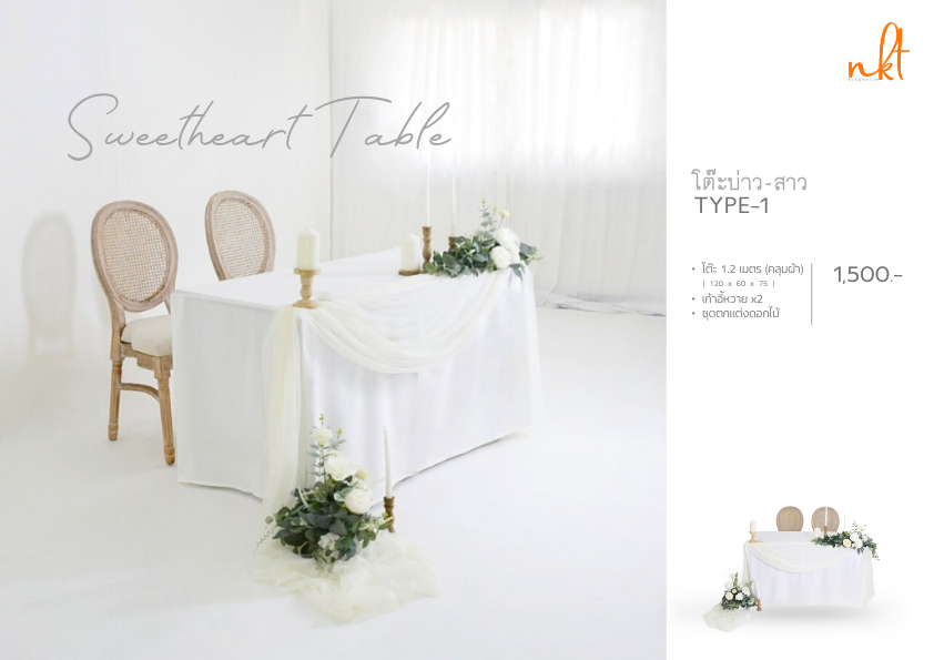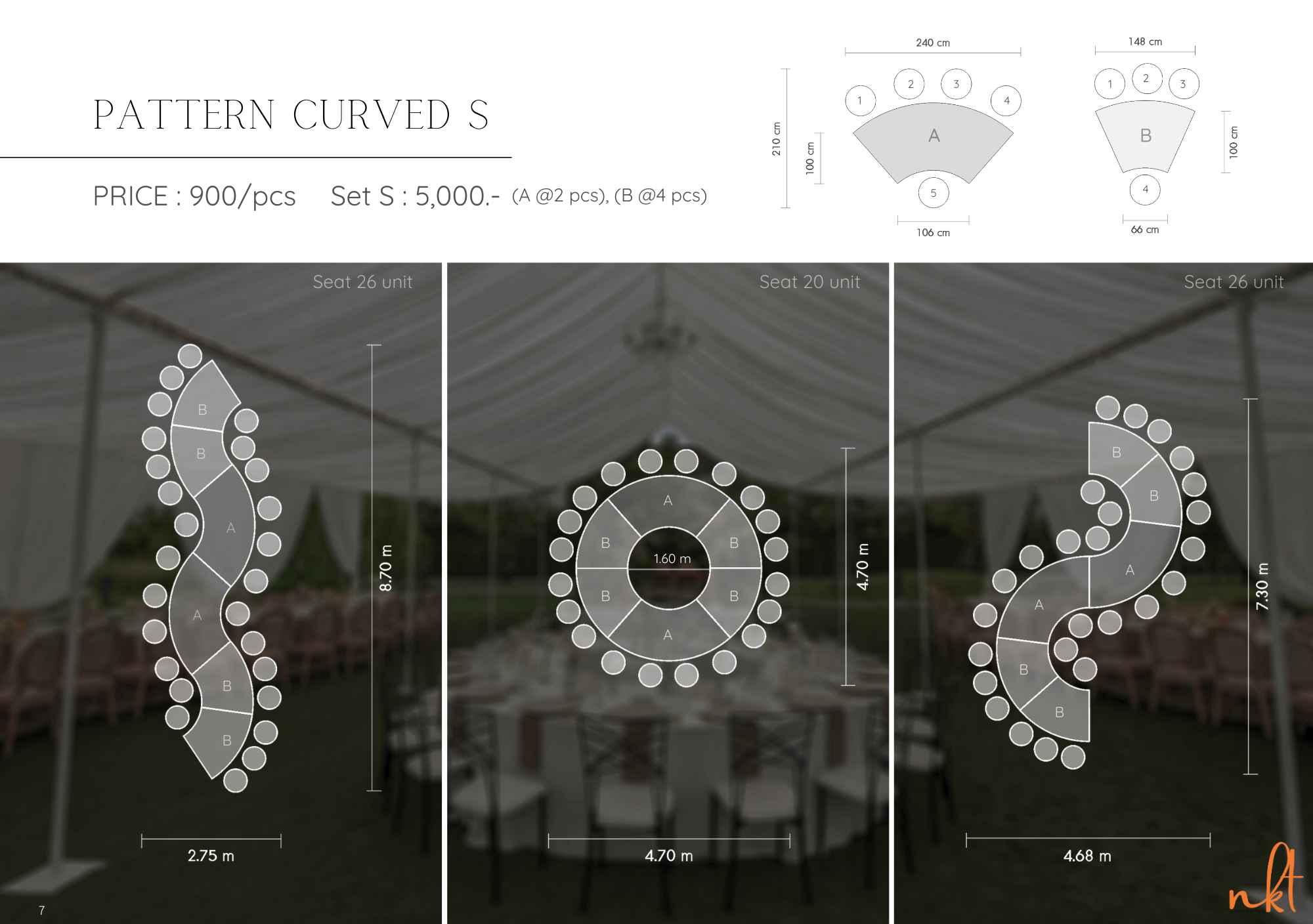 เช่าเซตโต๊ะโค้ง S (ใช้รูปแบบ A,B) | Set 5,000 (A@2pcs) + (B@4pcs) |