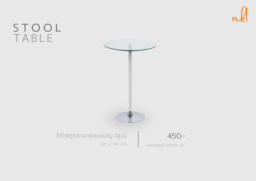 เช่าโต๊ะสตูกระจกแชมเปญ(สูง) 60x110cm | 450 |