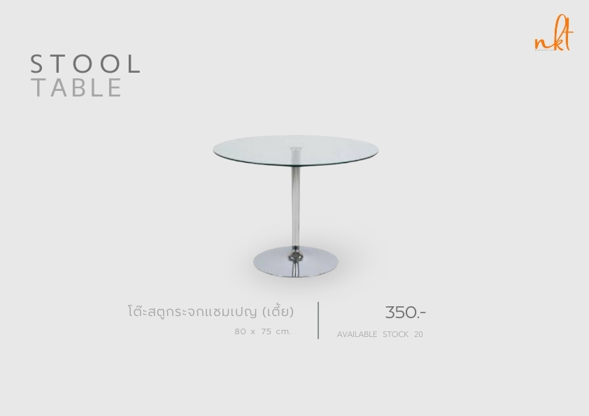 เช่าโต๊ะสตูกระจกแชมเปญ(เตี้ย) 80x75cm | 350 |