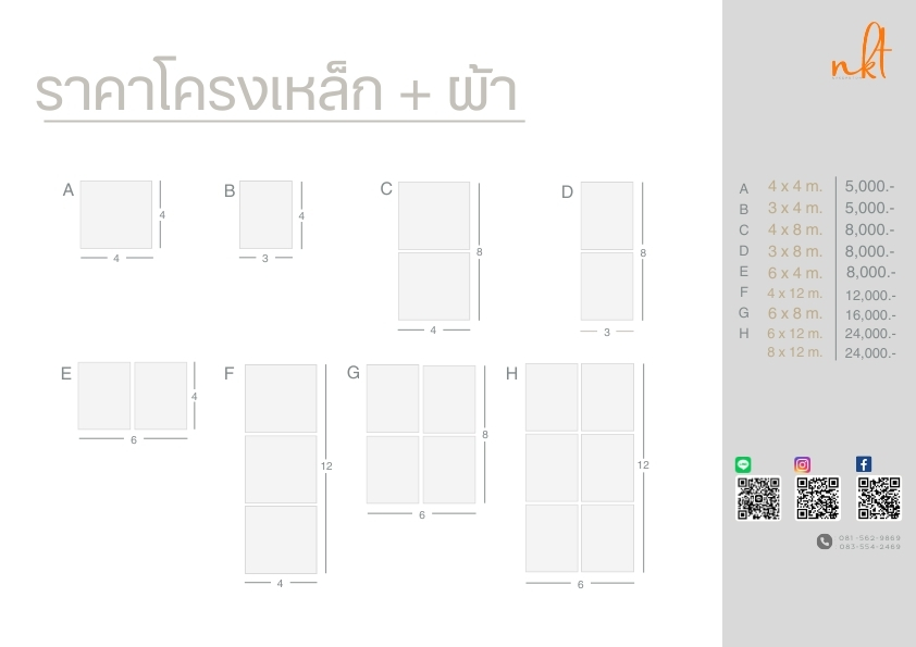 เช่าเต้นท์โครงเหล็ก+ผ้า(C) 4x8m | 8,000 |