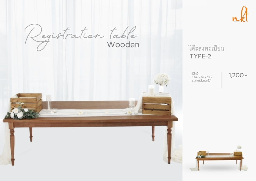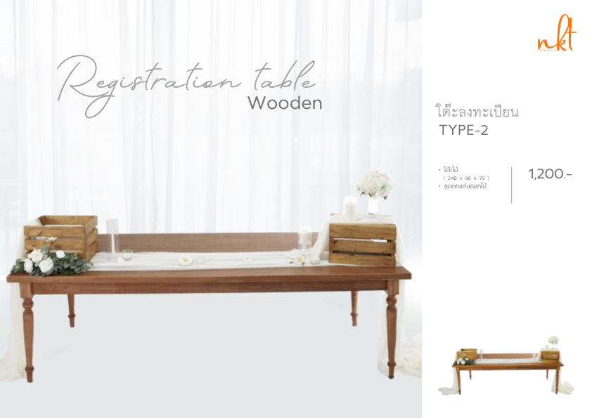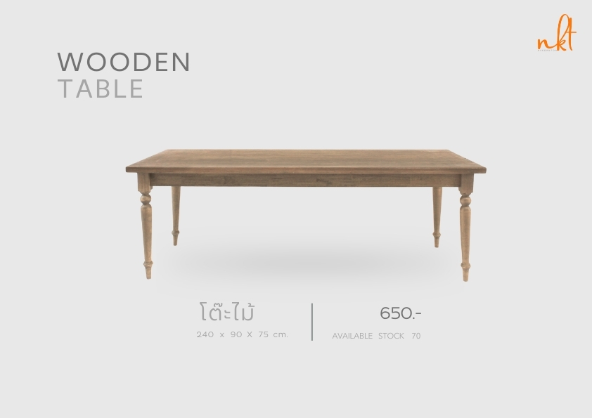 เช่าโต๊ะไม้ 240x90x75cm | 650 |