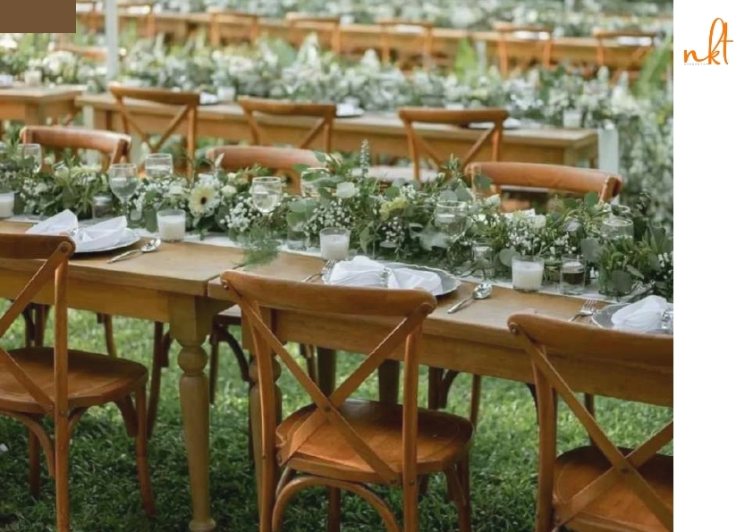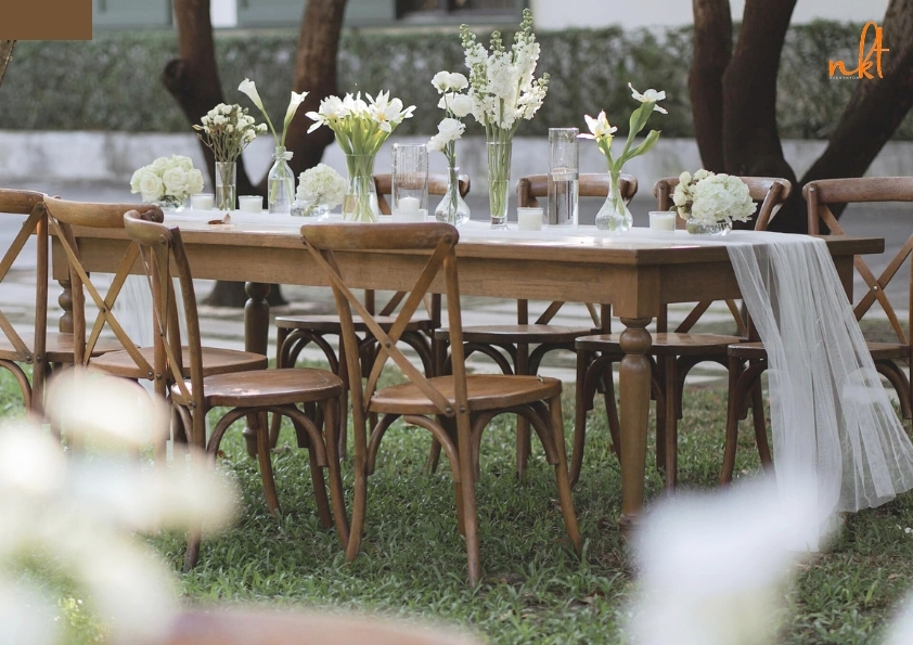 บริการให้เช่าโต๊ะ เก้าอี้ เช่าโต๊ะไม้จัดงานแต่งงาน เช่าชุดจัดงานในสวน เช่าเก้าอี้ไม้