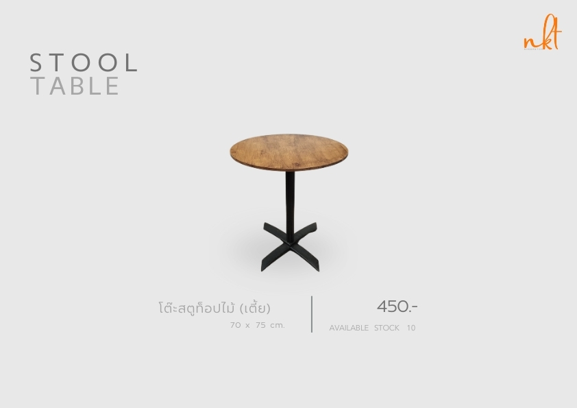เช่าโต๊ะสตูท๊อปไม้(เตี้ย) 70x75cm. | 450 |