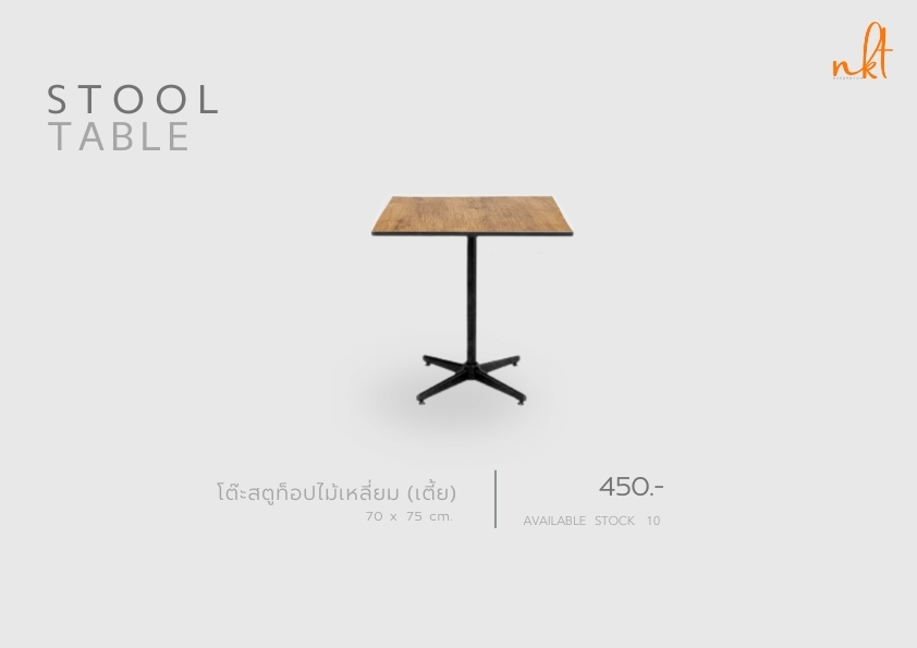 เช่าโต๊ะสตูท๊อปไม้เหลี่ยม 70x75cm. | 450 |