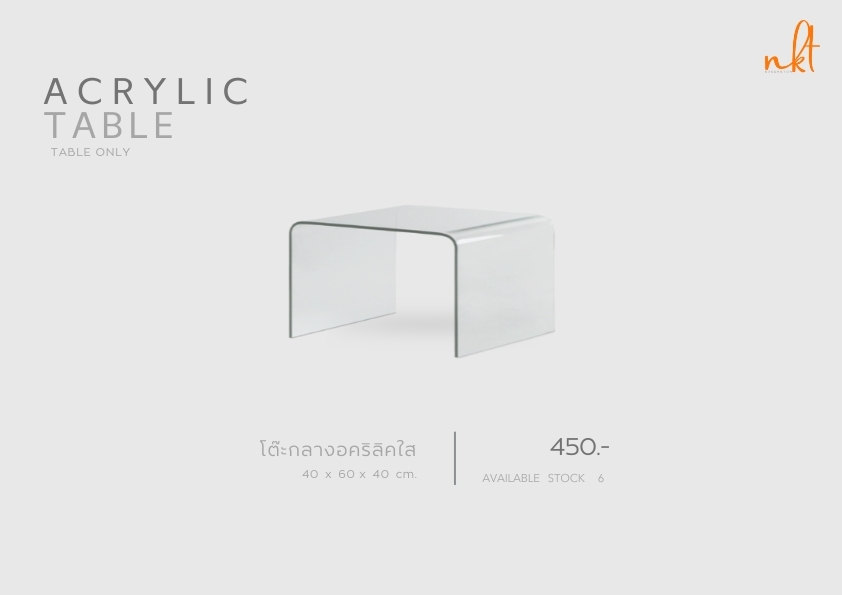 เช่าโต๊ะกลางอคริลิคใส 40x60x40cm | 450 |