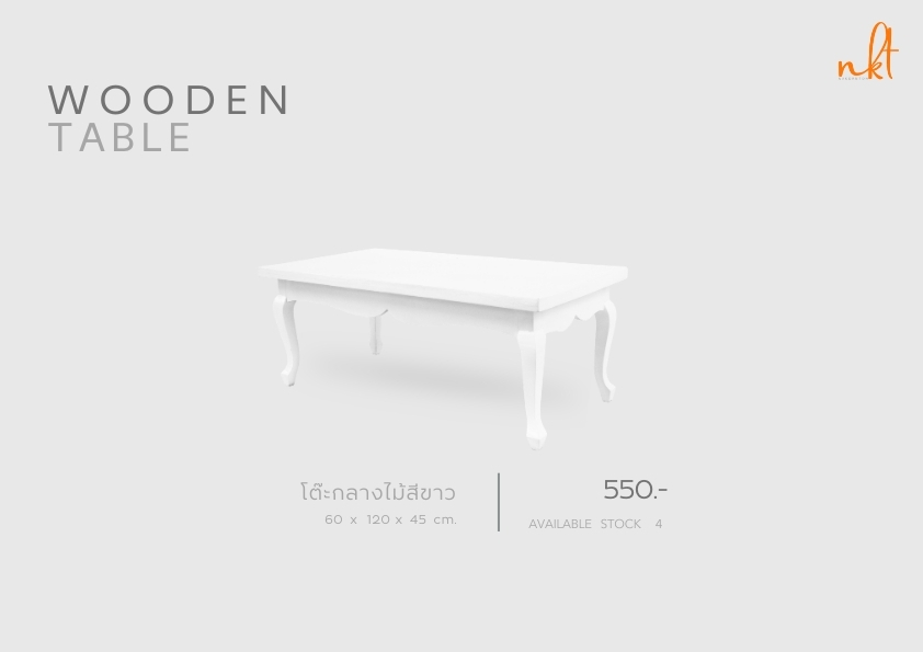 เช่าโต๊ะกลางไม้สีขาว 60x120x45cm | 550 |
