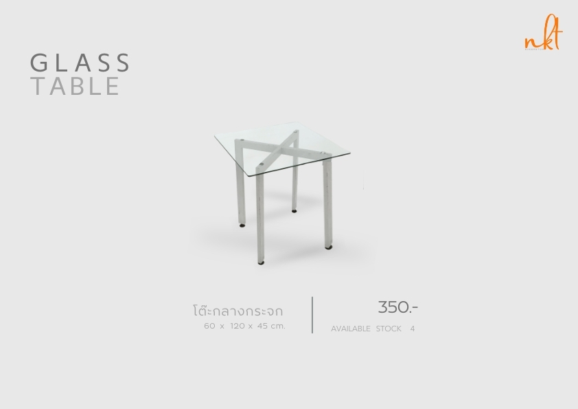 เช่าโต๊ะสตูกระจกขาแฉก(เตี้ย) 60x75cm | 350 |