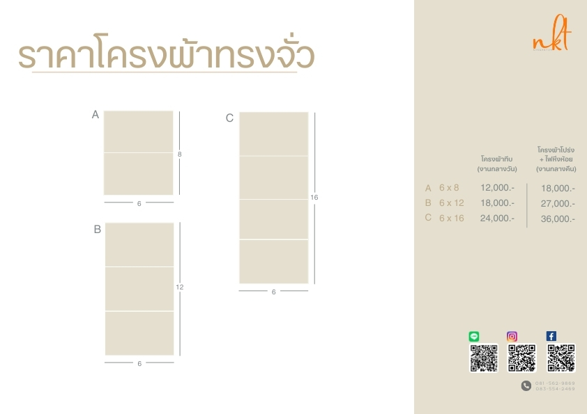 เช่าเต้นท์โครงเหล็ก+ผ้า(G) 6x8m | 24,000 |