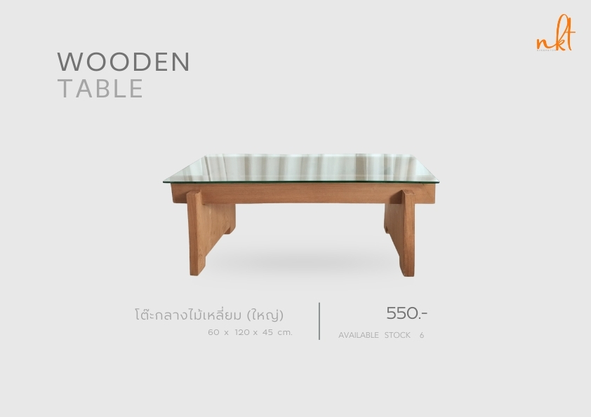 เช่าโต๊ะกลางไม้เหลี่ยม(ใหญ่) 60x120x45cm | 550 |