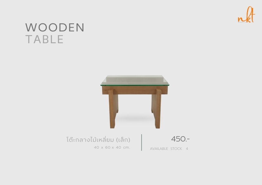 เช่าโต๊ะกลางไม้เหลี่ยม(เล็ก) 40x60x40cm | 450 |