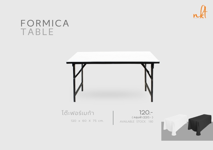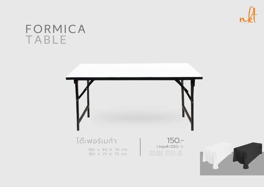 เช่าโต๊ะฟอร์เมก้าใหญ่ 180x60x75cm และ 180x75x75cm | 150 |
