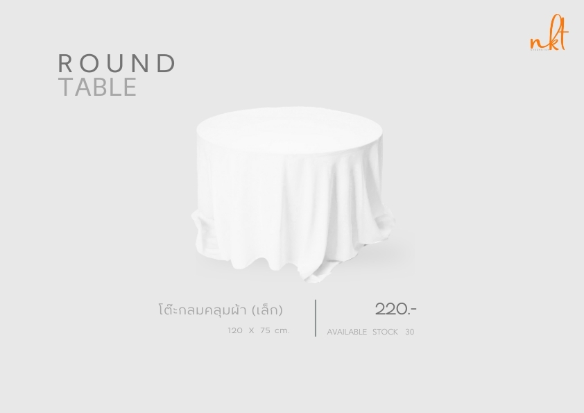 เช่าโต๊ะกลมคลุมผ้าเล็ก | 220 |