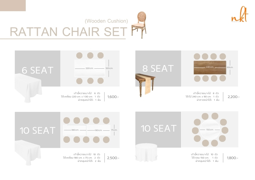 เช่าเก้าอี้หวายเบาะไม้ | 200 |