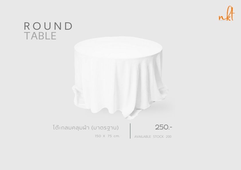 เช่าโต๊ะกลมคลุมผ้ามาตรฐาน | 250 |