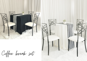 | เช่าเซตโต๊ะโค้ง S (ใช้รูปแบบ A,B) | Set 5,000 (A@2pcs) + (B@4pcs) |