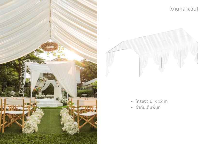 | โครงผ้าทรงจั่ว 6x8m (งานกลางวัน) | 12,000 | |||