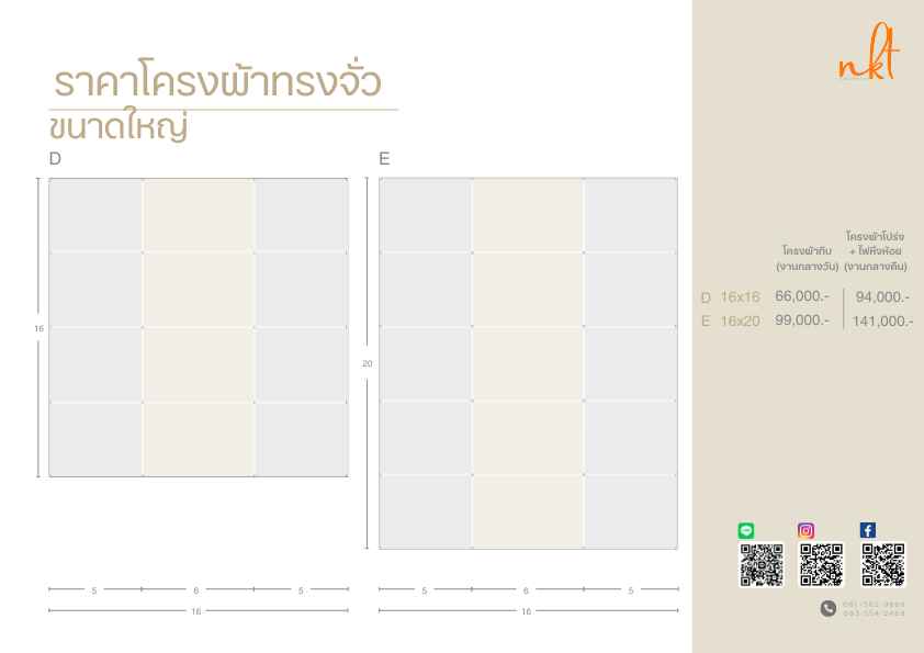 | โครงผ้าทรงจั่วขนาดใหญ่ 16x16m. (งานกลางวัน) | 66,000 | |||