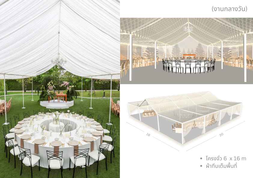 | โครงผ้าทรงจั่ว 6x16m. (งานกลางวัน) | 24,000 | |||