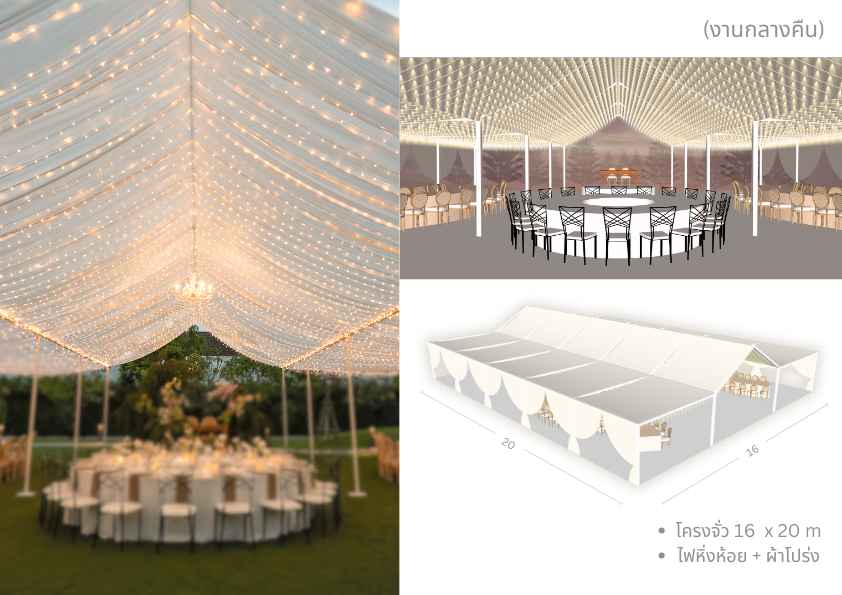 | โครงผ้าทรงจั่วขนาดใหญ่ 16x20m. +ไฟหิ่งห้อย(งานกลางคืน) | 141,000 | |||