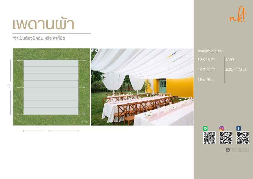| เพดานผ้า 10x10m / 12x12m. / 16x16m. | 200/ตรม. | |||