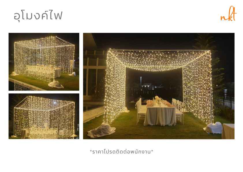 | โครงผ้าทรงจั่ว 6x8m +ไฟหิ่งห้อย(งานกลางคืน) | 18,000 | |||